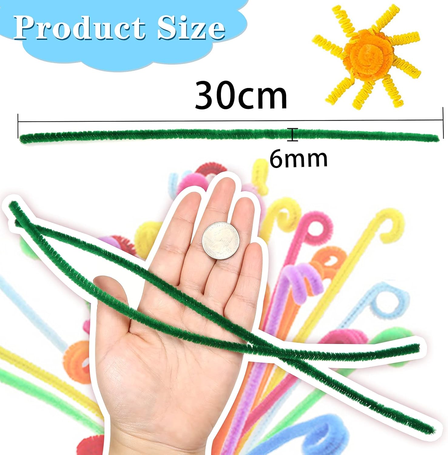 Renkli şönil telleri ihtiyacınız olan uzunlukta kesmenize olanak tanır ve ip dağılmaz.